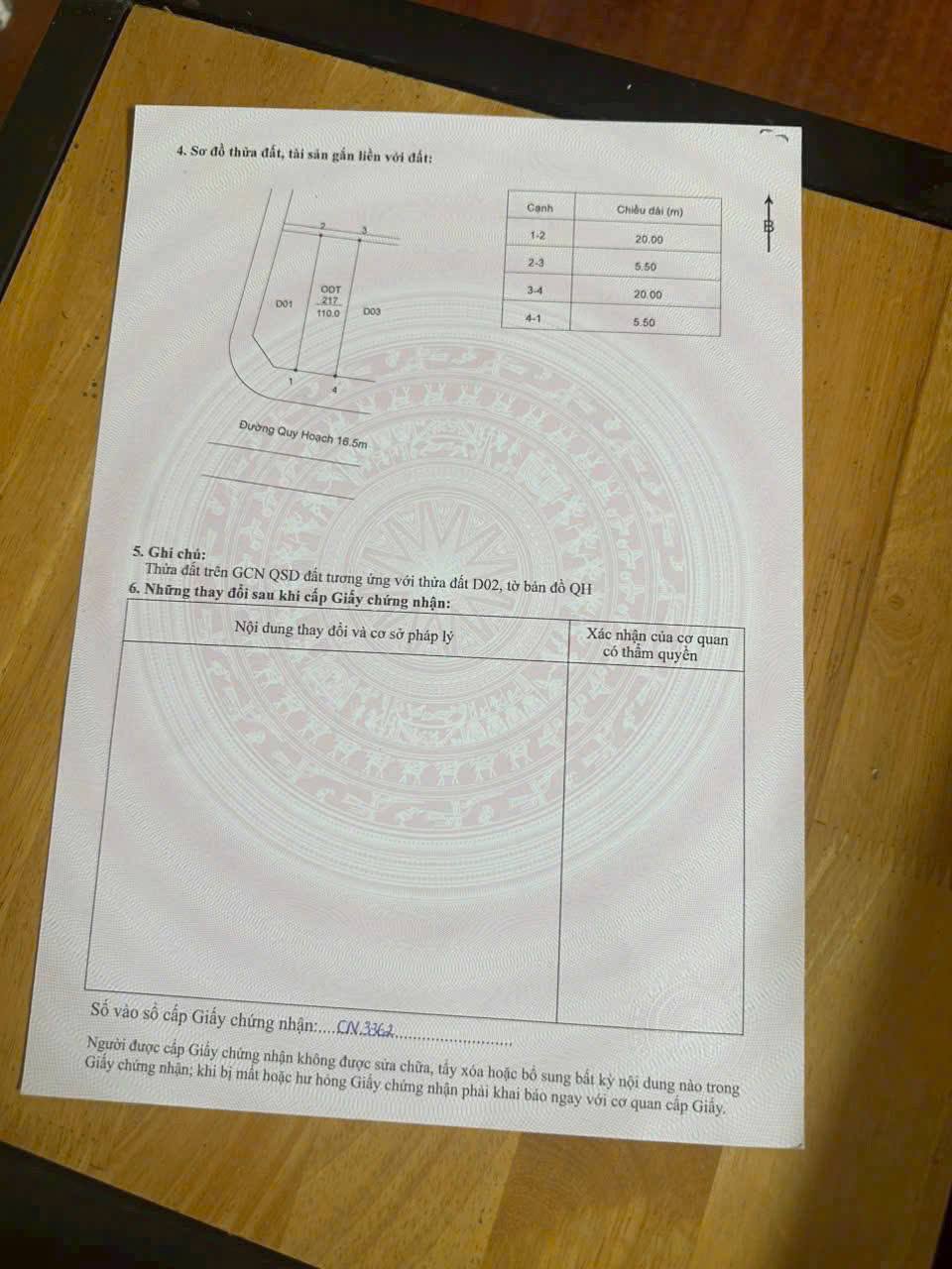 Diện tích: 5.5m x 20m, không lỗi nhỏ.