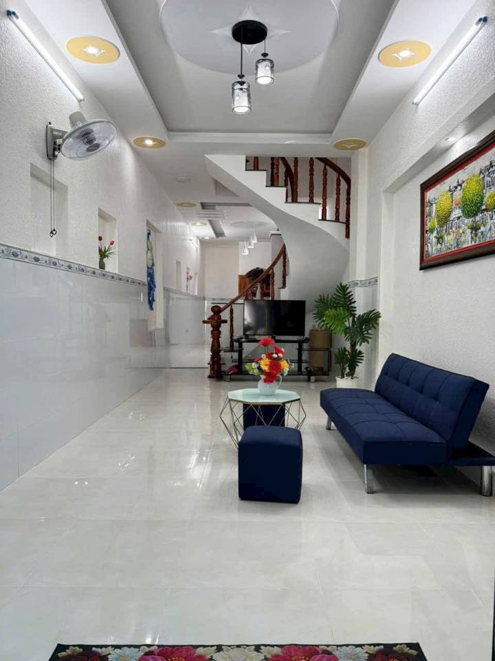 Nhà xây 1 trệt, 2 lầu kiên cố, thiết kế thông minh với sân để ô tô rộng rãi. Bên trong có 3 phòng ngủ siêu rộng rãi, 3 nhà vệ sinh, 1 phòng thờ trang nghiêm và 1 phòng phơi giặt tiện lợi. Hướng nhà là hướng Nam mát mẻ, cực kỳ hợp với gia chủ Đông Tứ Trạch.