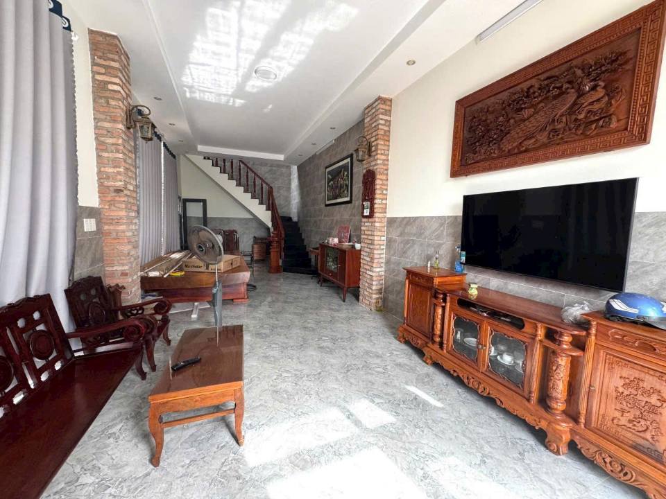 Diện tích đất 6.5m x 25m, thổ cư 91m2, căn nhà có thiết kế hiện đại với 2 phòng ngủ và 2 WC, phòng khách ấm cúng và sân rộng để xe ô tô.