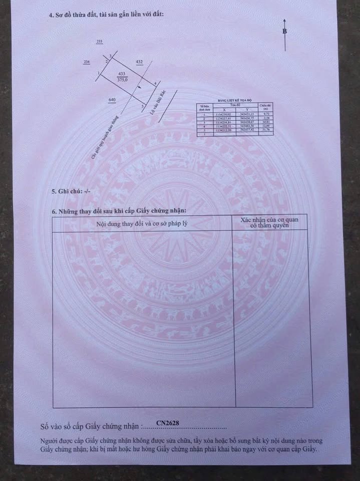 Với diện tích đất lên đến 375m², ngang 12m và có 113.5m² thổ cư, quy hoạch đất ở, đây là một không gian lý tưởng cho cả gia đình bạn.