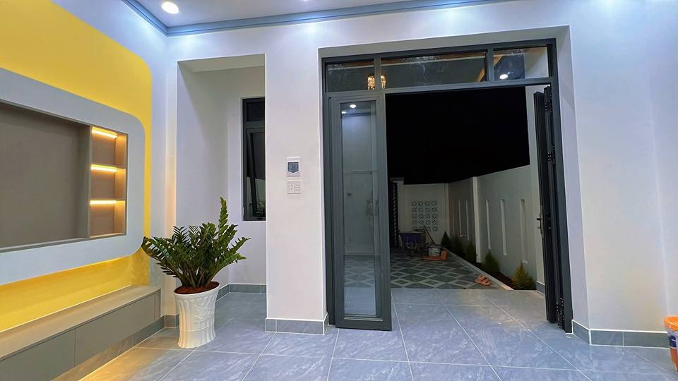 Bước vào nhà, bạn sẽ cảm nhận được sự ấm cúng và tiện nghi với thiết kế thông minh, bao gồm 1 phòng khách thoáng đãng, 2 phòng ngủ êm ái, 2 nhà vệ sinh hiện đại, khu vực bếp tiện lợi. Đặc biệt, khoảng sân trước rộng rãi không chỉ mang đến không gian thư giãn, trồng cây xanh mà còn tạo cảm giác thông thoáng, đón gió trời.