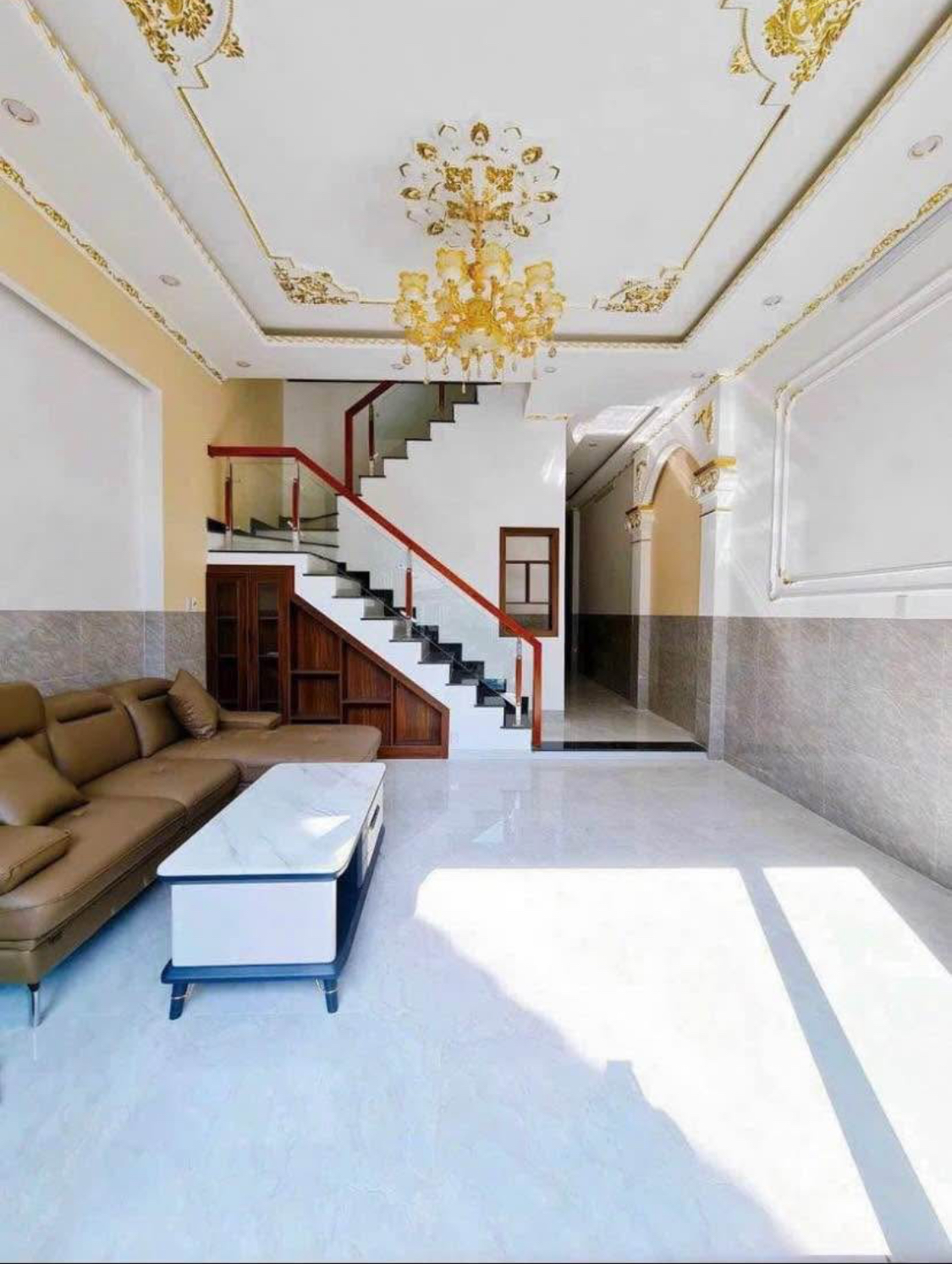 Nhà mới xây, thiết kế hiện đại, nội thất cơ bản.