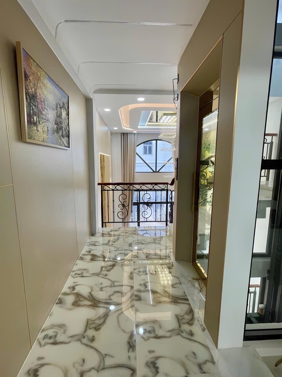 Nhà đúc kiên cố 5 tầng, trang bị thang máy "xịn sò", có cả sân thượng "chill" và khu vực phơi đồ tiện lợi. Đặc biệt, giếng trời thông thoáng, mang ánh sáng tự nhiên và sinh khí vào nhà.