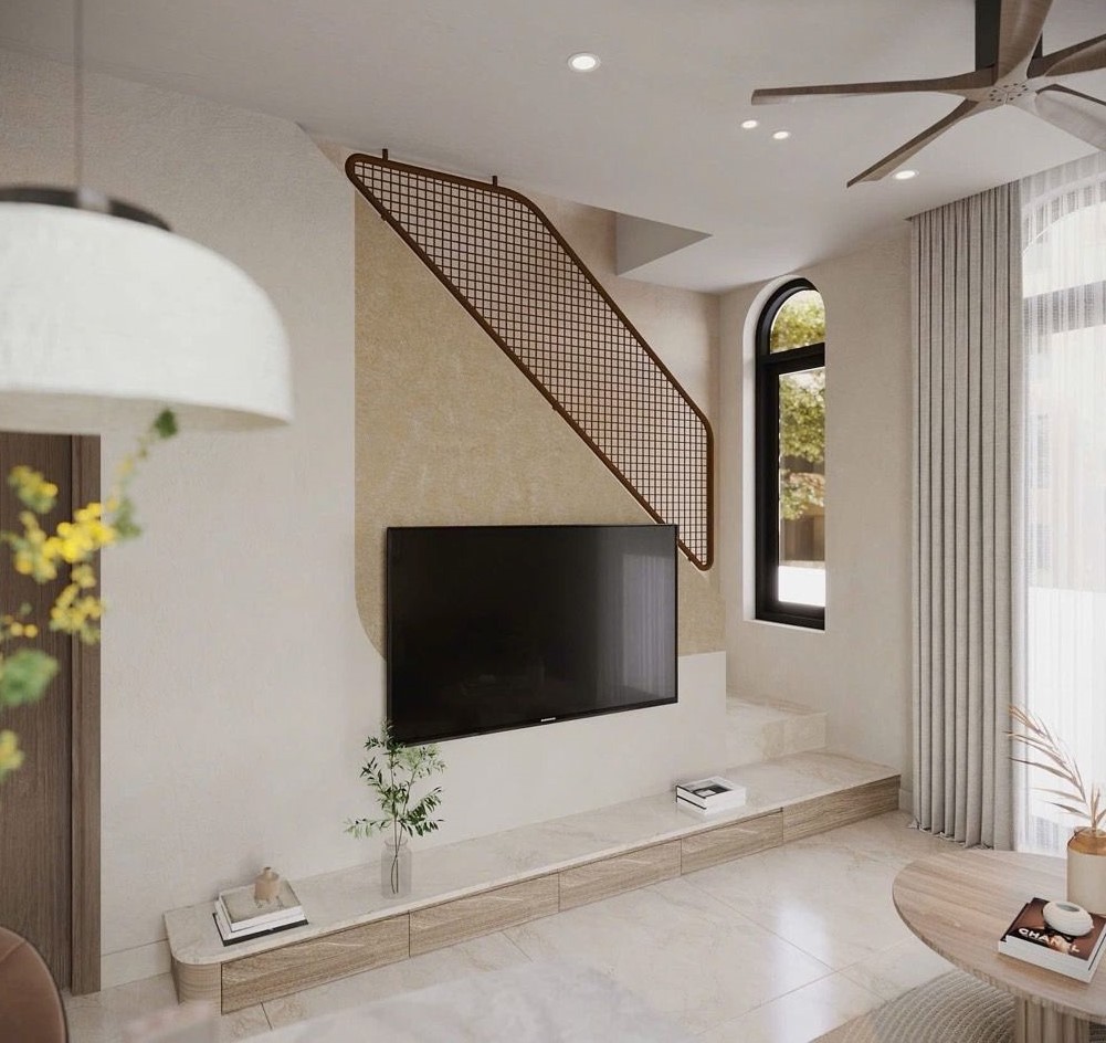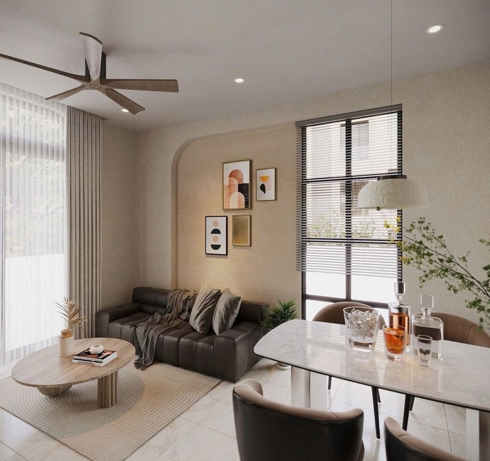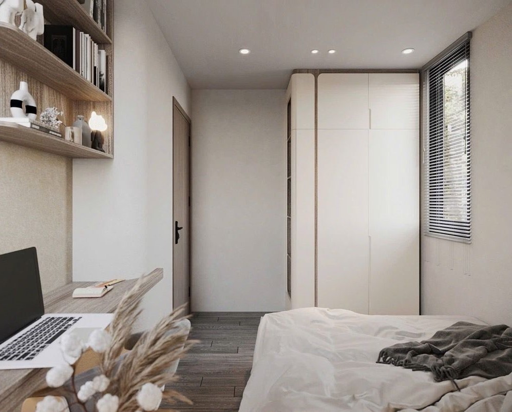 Diện tích 33m2 (4.7 x 7.2m) với thiết kế 2 tầng, 3 phòng ngủ, có cả phòng ngủ dưới trệt cho tiện, cửa hông, ban công, cửa sổ đầy đủ cho mỗi phòng thoáng đãng.