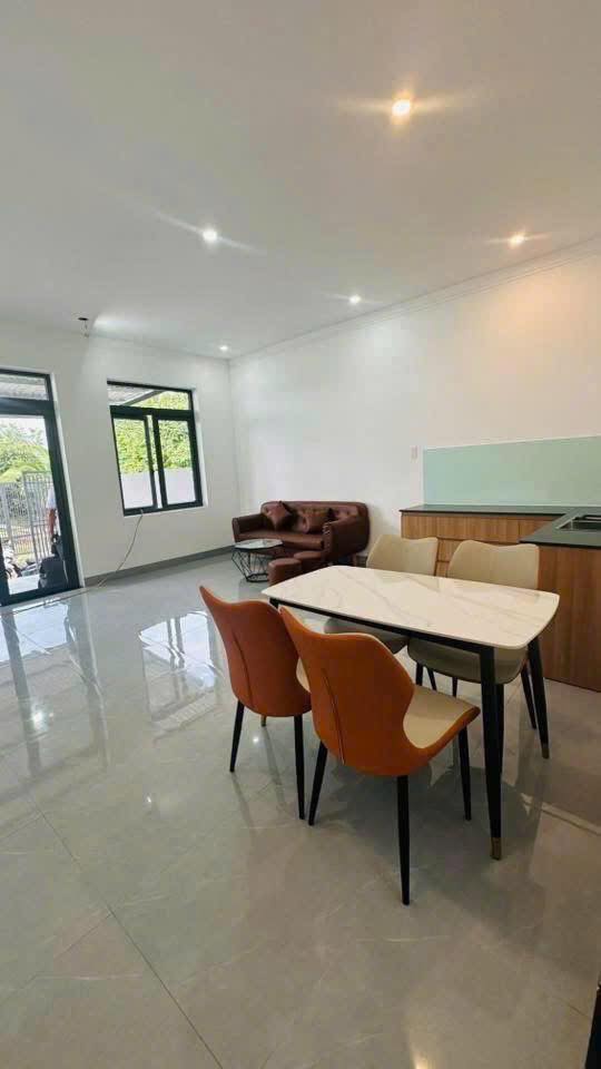 Bên trong nhà có đủ 2 phòng ngủ ấm cúng, phòng khách rộng rãi để tụ tập bạn bè, bếp núc tiện nghi. Đặc biệt, có cả sân ô tô siêu rộng rãi, đã được làm hàng rào và mái che kín mít, tha hồ để xe hơi mà không lo mưa nắng. Nội thất cơ bản đã có sẵn bàn ghế, giường, tủ, chỉ việc xách vali vào ở thôi!