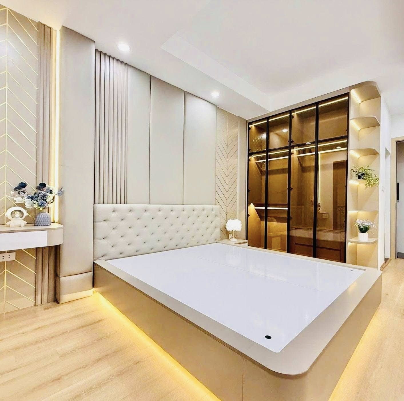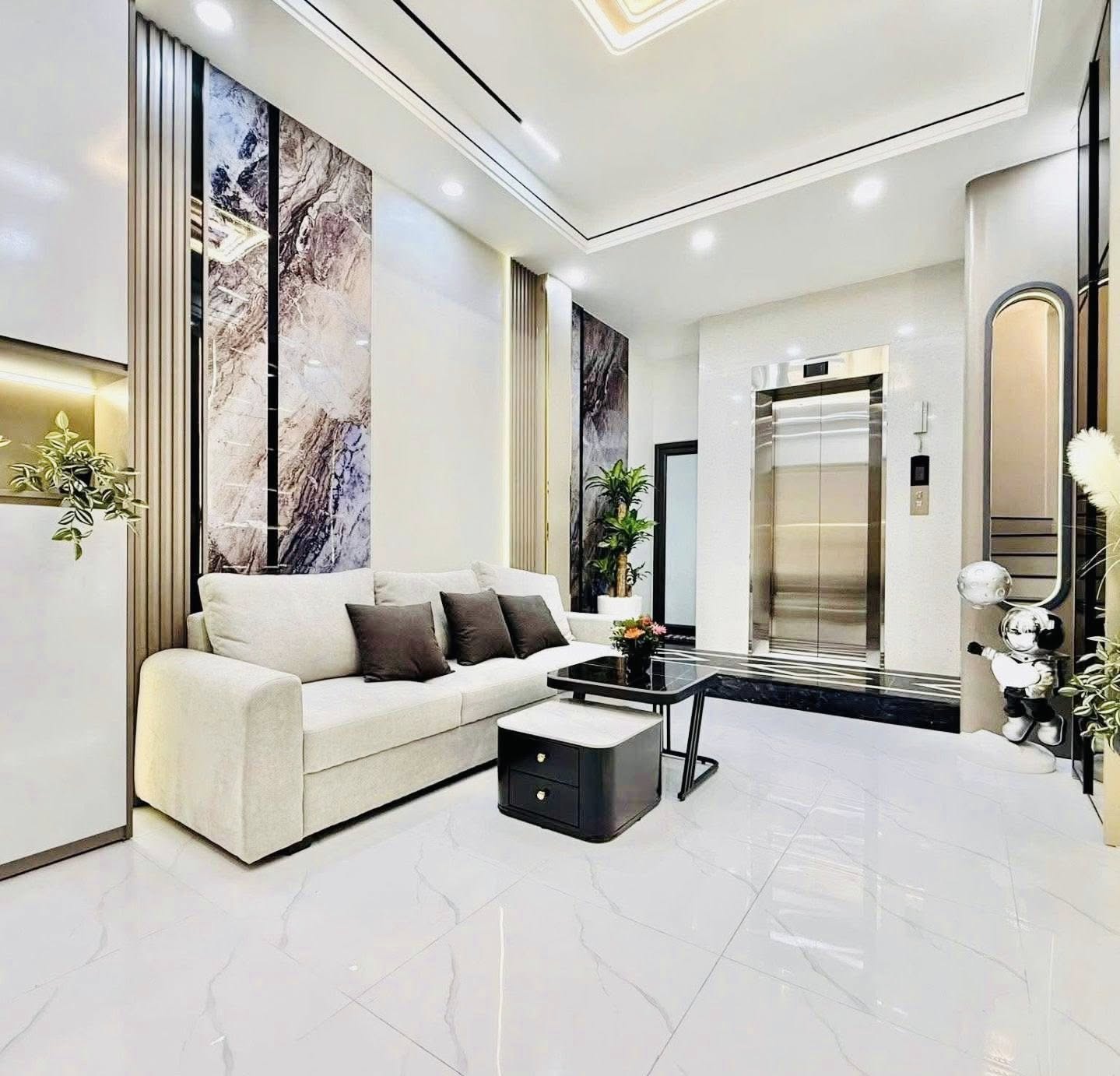 Với diện tích 46m² và thiết kế 6 tầng hiện đại, căn nhà mang đến một không gian sống rộng rãi, thoáng đãng. Mặt tiền 4.8m, nở hậu, cùng với sự hiện diện của thang máy, tạo nên sự thuận tiện tối đa cho sinh hoạt hàng ngày.