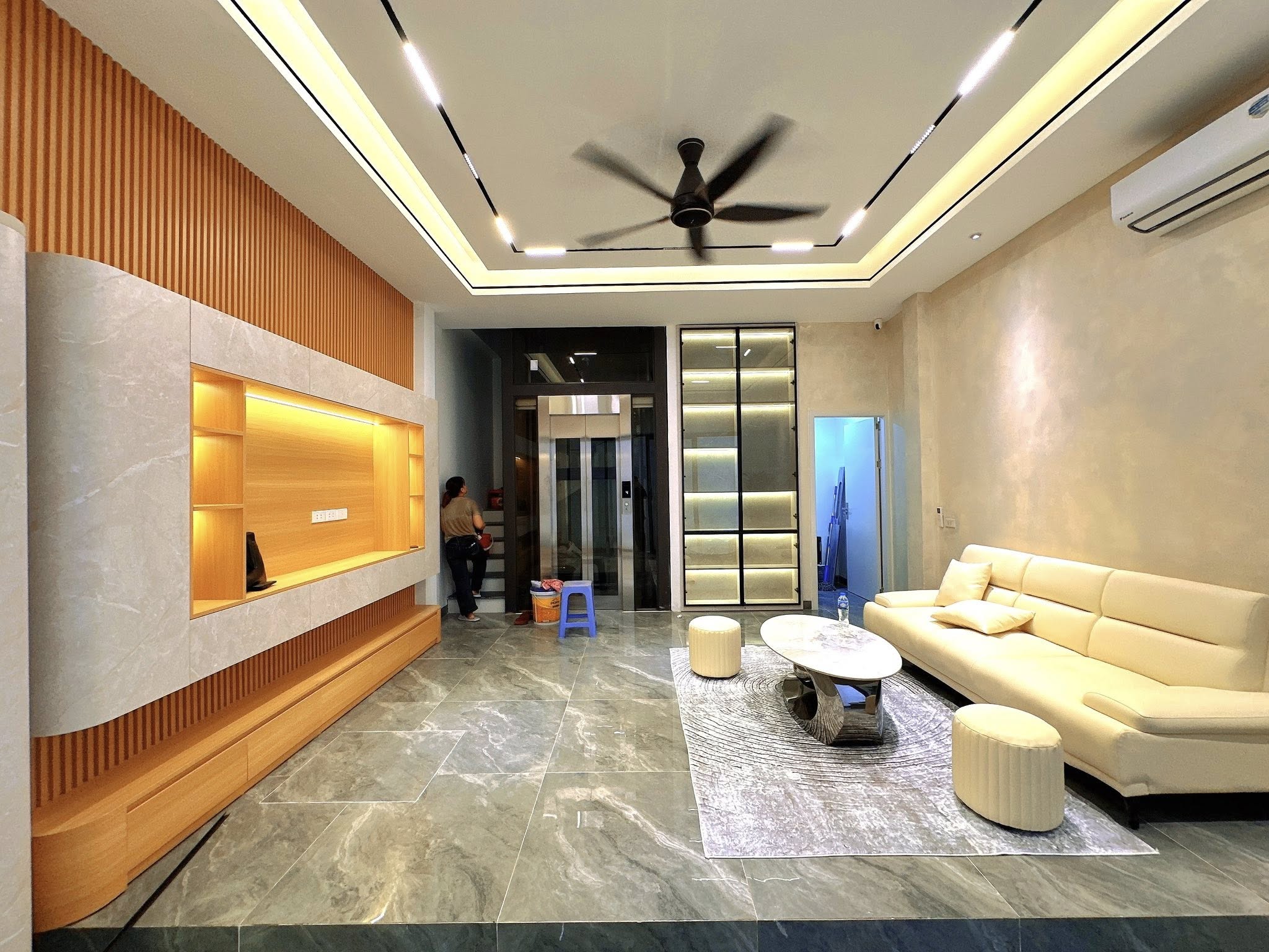 Với diện tích sàn 47m2, công trình được xây dựng 7 tầng kiên cố, tích hợp thang máy hiện đại, mang đến sự tiện nghi tối đa.