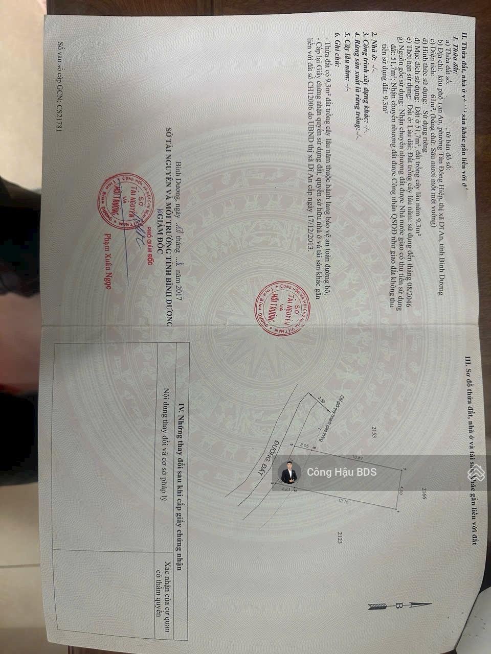 Diện tích đất: 61m (thổ cư 52m)