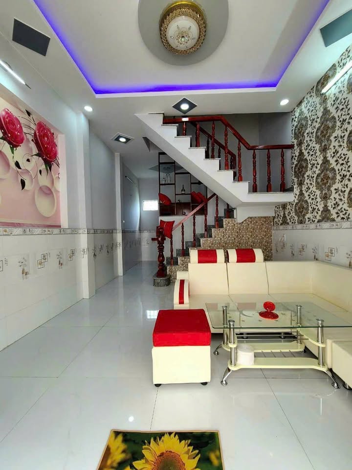 Nhà 1 trệt 1 lầu có diện tích 4m x 8m, bao gồm 2 phòng ngủ và 2 nhà vệ sinh, tọa lạc tại khu vực Mỹ Hạnh Bắc.
