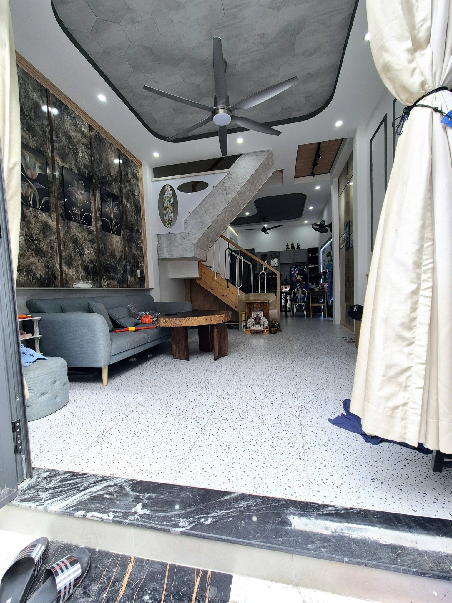 Thiết kế thông minh với 1 trệt, 2 lầu, bao gồm 4 phòng ngủ và 3 nhà vệ sinh, đáp ứng mọi nhu cầu sinh hoạt. Đặc biệt, căn nhà có sân thượng suốt trước sau, tạo không gian thư giãn và ngắm cảnh tuyệt vời.