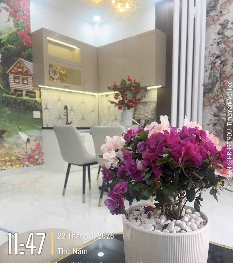 Bán nhà trung tâm Phường 11, Gò Vấp vị trí hiếm, giá tốt trong phân khúc. * Thông tin chi tiết: Diện tích: 27m2 (ngang 5m, dài 5.5m). Kết cấu: 1 trệt 1 lầu bê tông cốt thép kiên cố. Công năng: 2 phòng ngủ, 2 WC, ban công rộng, nhà thoáng mát. Full nội thất vào ở ngay, không cần sửa chữa. Sổ hồng A4 vuông vức, hoàn công đầy đủ, pháp lý chuẩn. * Vị trí hẻm: Nhà nằm ngay Thống Nhất giao Quang Trung, khu dân cư hiện hữu, an ninh. Hẻm trước nhà rộng 3m, hẻm 3 gác sạch đẹp, thông thoáng. Giao thông thuận tiện đi Quang Trung, Nguyễn Kiệm, Phạm Văn Chiêu, Tân Bình. * Tiện ích xung quanh: Gần chợ, trường học, siêu thị, ngân hàng. Khu vực ở ổn định, phù hợp ở lâu dài hoặc cho thuê. * Giá bán: 4.15 tỷ (còn thương lượng). Mức giá tốt so với vị trí trung tâm Thống Nhất Quang Trung, nguồn nhà hiếm. Hỗ trợ xem nhà linh hoạt làm việc chính chủ. 155.