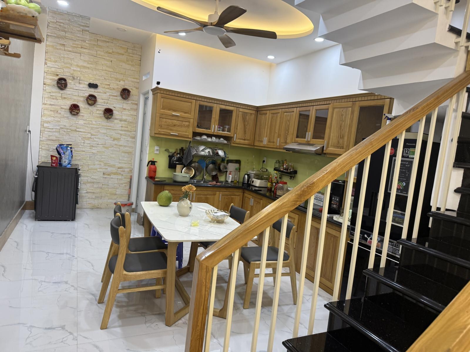 Nhà xây dựng 1 trệt 1 lầu kiên cố, thiết kế thông minh với 1 phòng khách, bếp ăn ấm cúng, 3 phòng ngủ