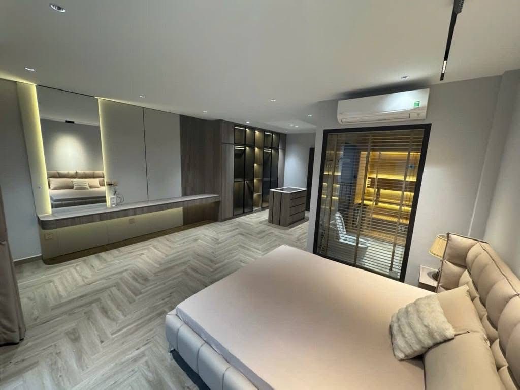 Nhà được thiết kế siêu đẹp, đẳng cấp với thang máy hiện đại. Full nội thất cao cấp bao gồm sàn gỗ, giường tủ, điều hòa, nóng lạnh đều được tặng lại toàn bộ cho chủ mới.