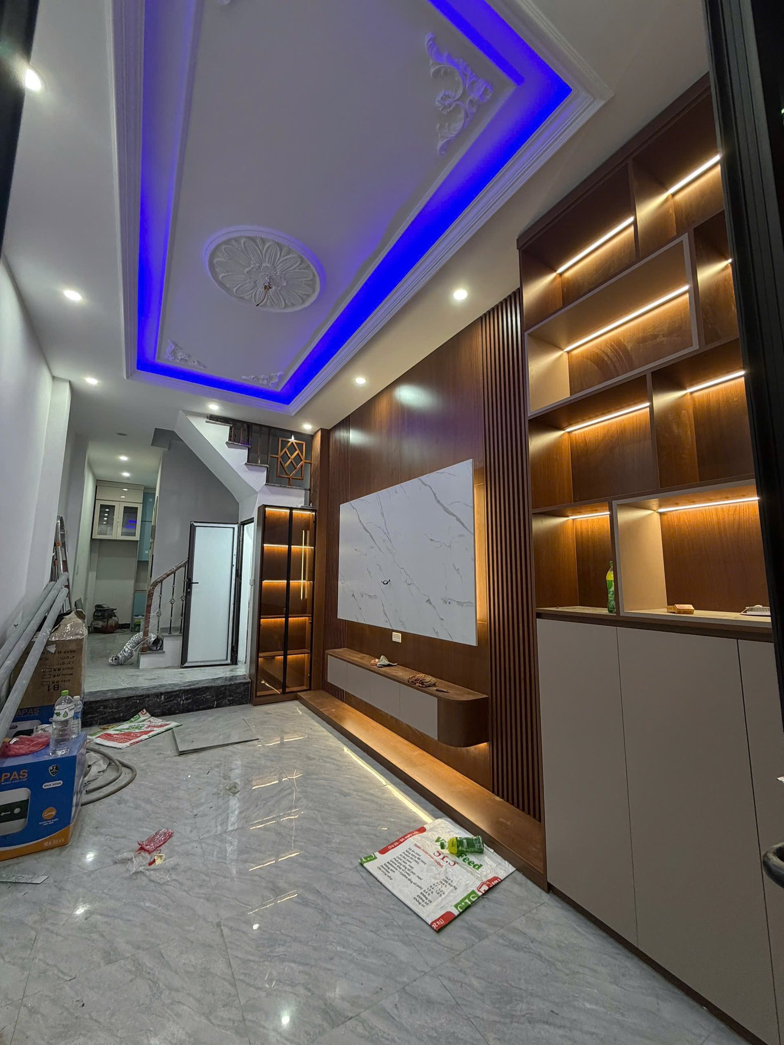 Bên trong, căn nhà được trang bị đầy đủ nội thất hiện đại, sang trọng, đặc biệt là có thang máy xịn xò, giúp việc di chuyển giữa các tầng trở nên vô cùng nhẹ nhàng và đẳng cấp.
