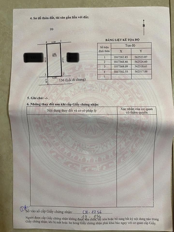 Bất động sản có diện tích 86.8m2 với chiều ngang 6m, đường vào rộng 3.5m.