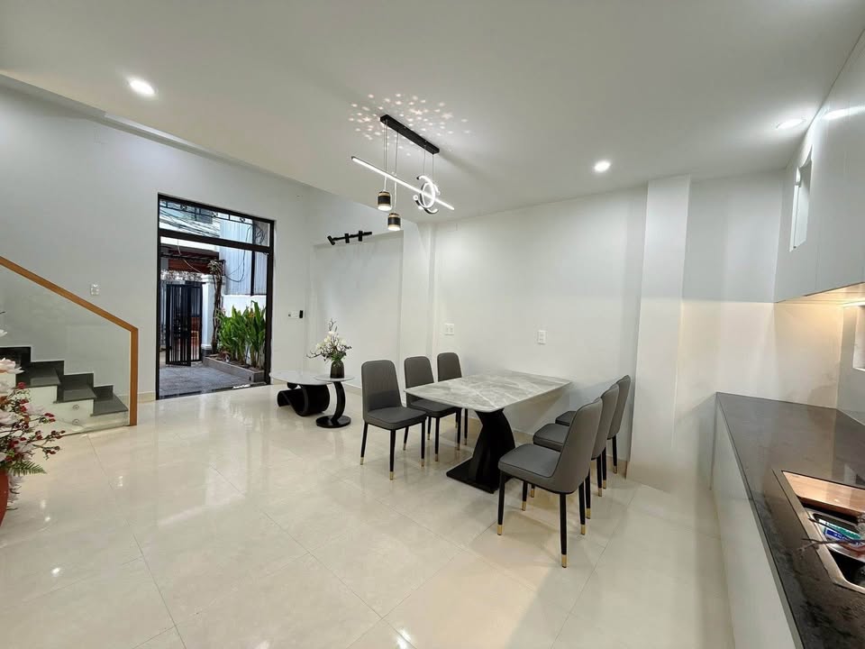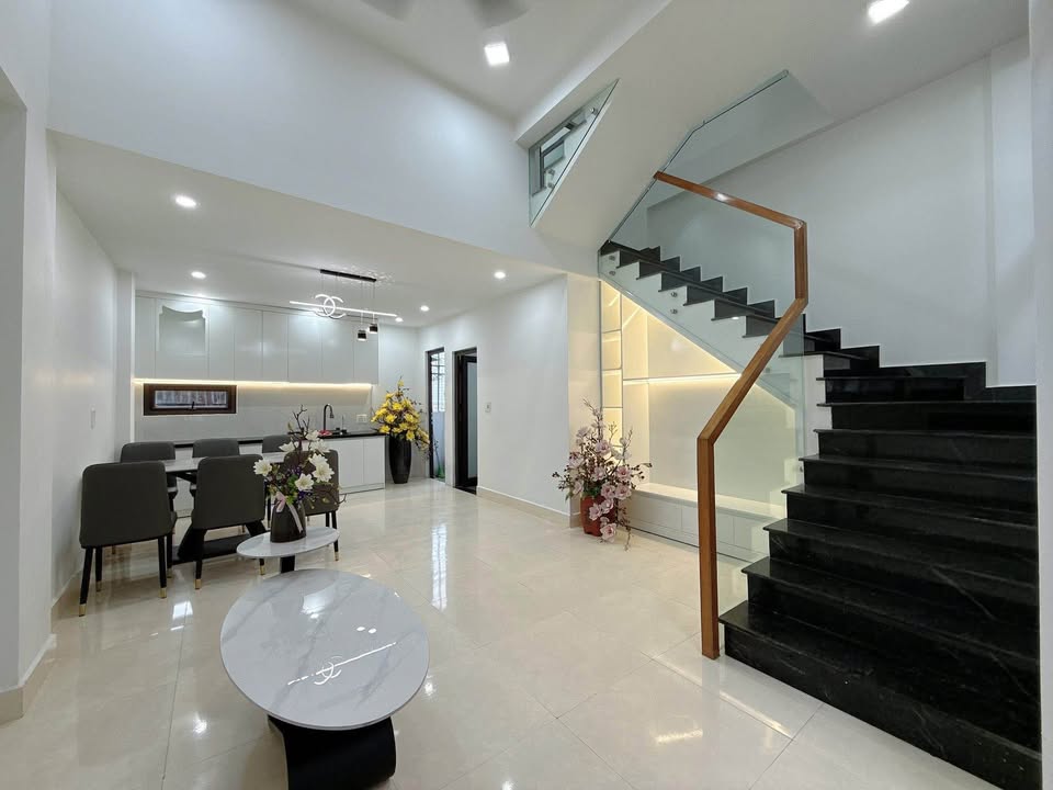 Nhà có diện tích 60m2, với chiều ngang hơn 5m và có nở hậu, tạo cảm giác rộng rãi và thoáng đãng.