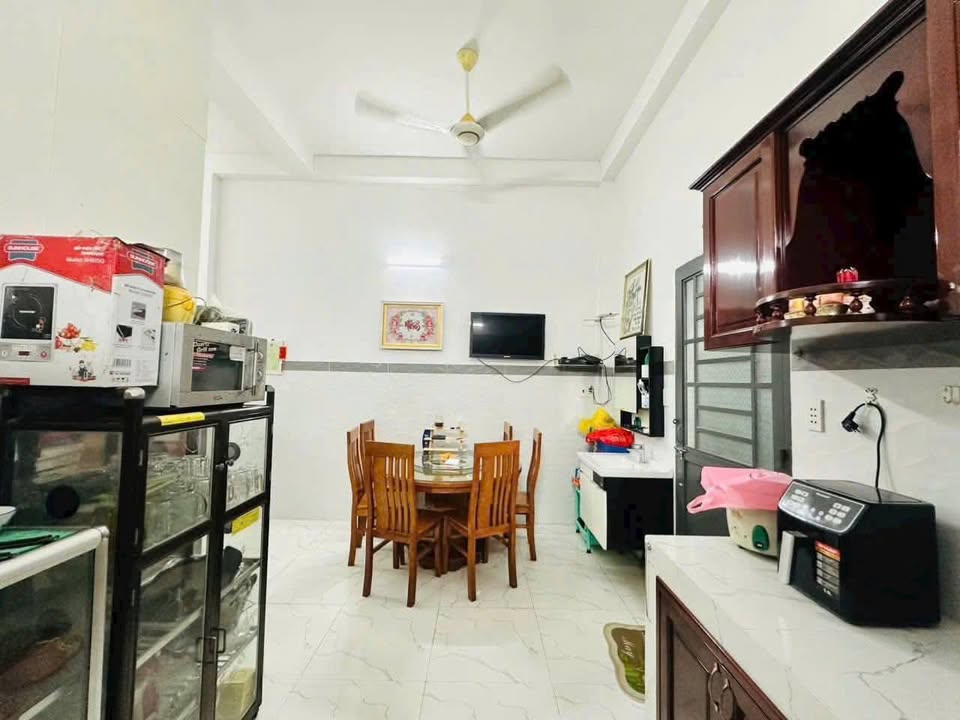 Nhà có thiết kế 1 phòng khách thoáng mát, 3 phòng ngủ và 2 nhà vệ sinh. Phía sau nhà có thêm 2m đất đã xây nhà tiền chế, thuận tiện làm sân phơi và kho. Vị trí nhà nằm sau lưng khu Nam Việt sầm uất, khu dân cư an ninh, hàng xóm thân thiện, với những căn nhà phố đẹp.