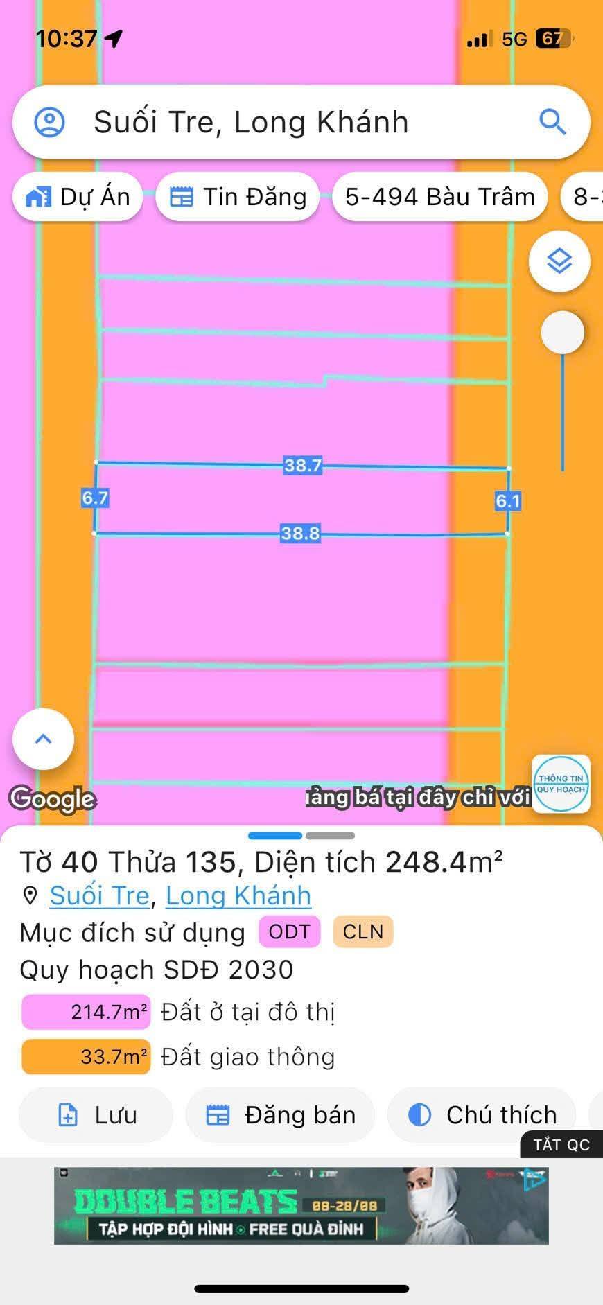 Bất động sản sở hữu diện tích lý tưởng với chiều ngang 6.1m, nở hậu 6.7m và chiều sâu 38m, mang đến không gian thoáng đãng và tiềm năng sinh lời cao.