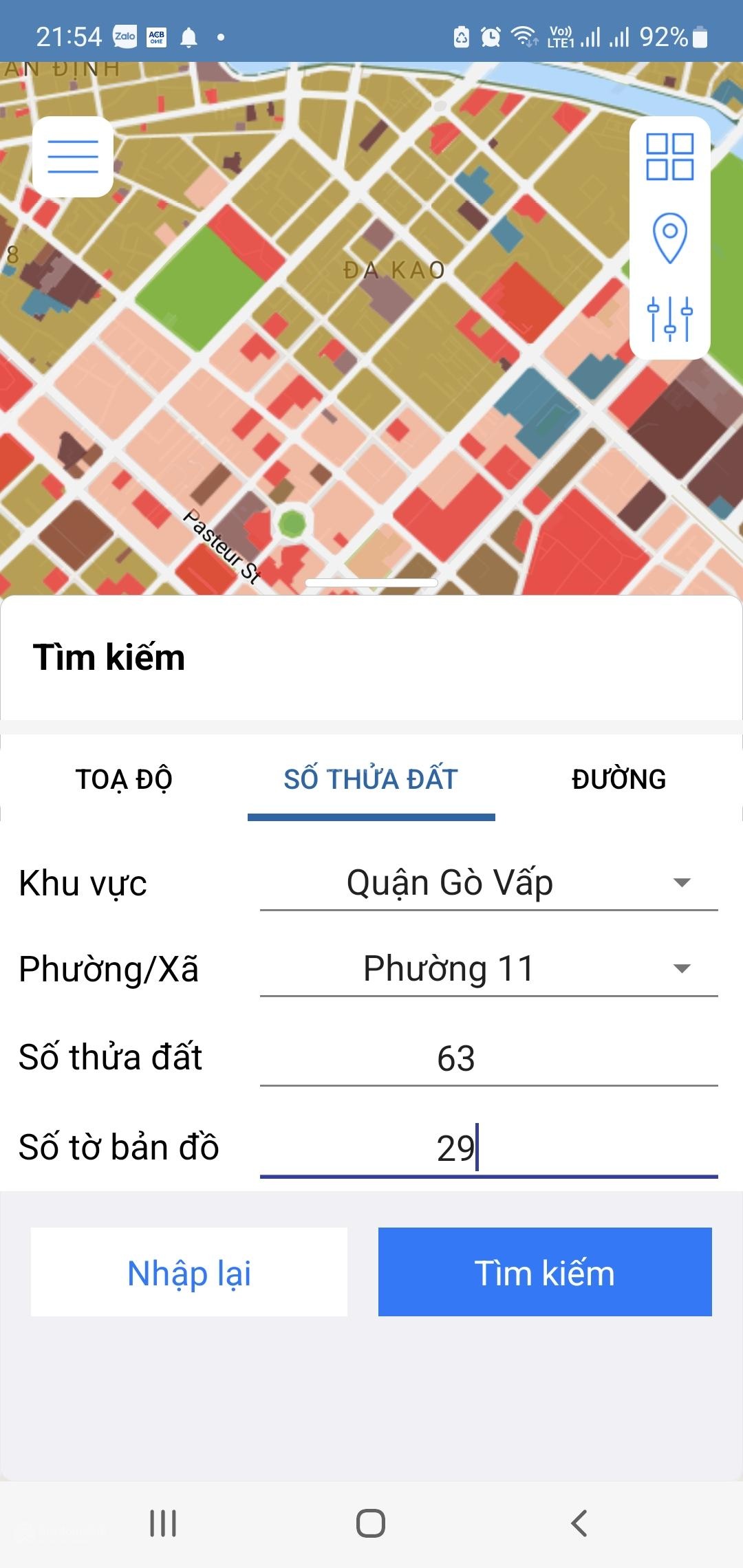 - Sổ đỏ nhà 2002 hiện đã cũ, chưa được cập nhập lộ giới xây dựng mới nhất. Có thể kiểm tra nhanh quy hoạch bằng ứng dụng "TTQH HCM", sẽ thấy diện tích công nhận là 48.3m² và được xây dựng toàn bộ (như hình)