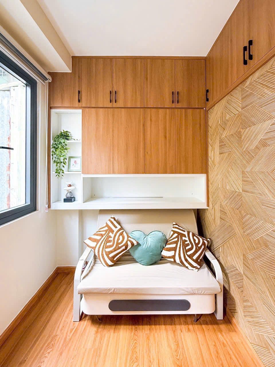 Với diện tích sử dụng 40m2, chiều ngang 3m, ngôi nhà được thiết kế 3 tầng, bao gồm 2 phòng ngủ, phòng khách và khu bếp tiện nghi.