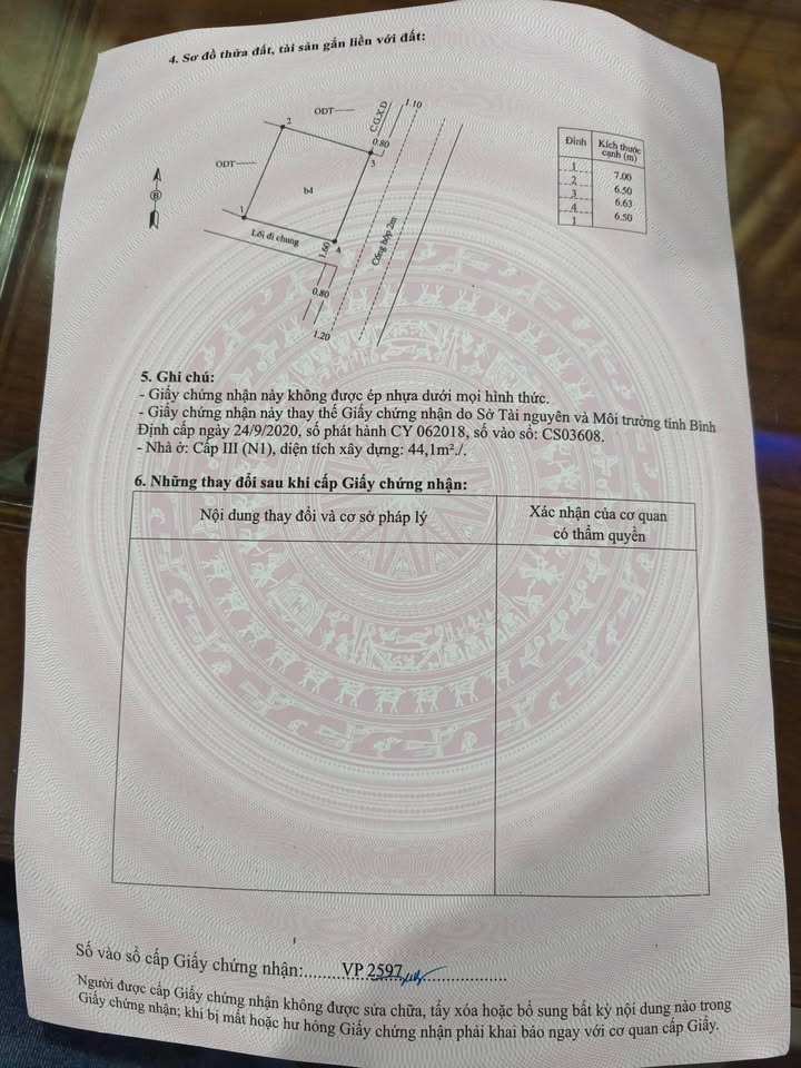 Diện tích đất 44m², mặt tiền rộng rãi 6.6m, hướng Đông Nam mát mẻ.