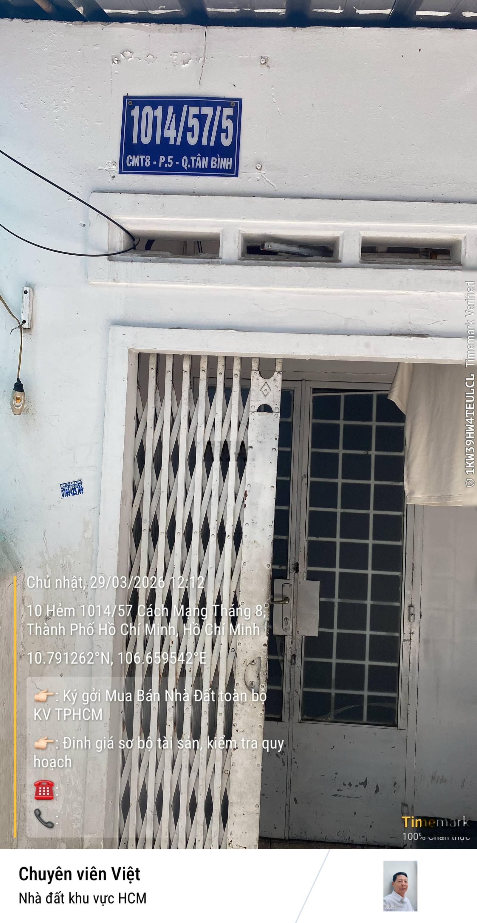 Nhà riêng Cách mang thang 8 Phuong 5 QTân Binh, Đường Cách Mạng Tháng Tám, Phường Tân Sơn Nhất, Hồ Chí Minh, trước đây Quận Tân Bình, Hồ Chí Minh có vị trí đắc địa, diện tích 40m2, thiết kế 1 tầng, phù hợp cho gia đình nhỏ hoặc đầu tư. + 2 phòng ngủ, 2 phòng tắm + Nội thất cơ bản, sẵn sàng vào ở + Mặt tiền 4m, ngõ vào rộng 3m, thuận tiện cho việc di chuyển + Pháp lý đầy đủ, đảm bảo an toàn cho giao dịch Nhà nằm trong khu vực yên tĩnh, thích hợp cho cuộc sống gia đình thoải mái. Địa điểm tiện ích xung quanh: - Gần siêu thị Nhất Hương, siêu thị sách Nhân Văn - Công viên Nguyễn Đình Khơi, công viên Văn Hóa Lê Thị Riêng - Trường Trung tâm tiếng Trung Hoa Văn Thương Mại - Bệnh viện Quốc Tế Queen, Bệnh viện Thống Nhất Liên hệ để được tư vấn miễn phí qua số điện thoại 0908111085, Nguyễn Hoàng Việt.