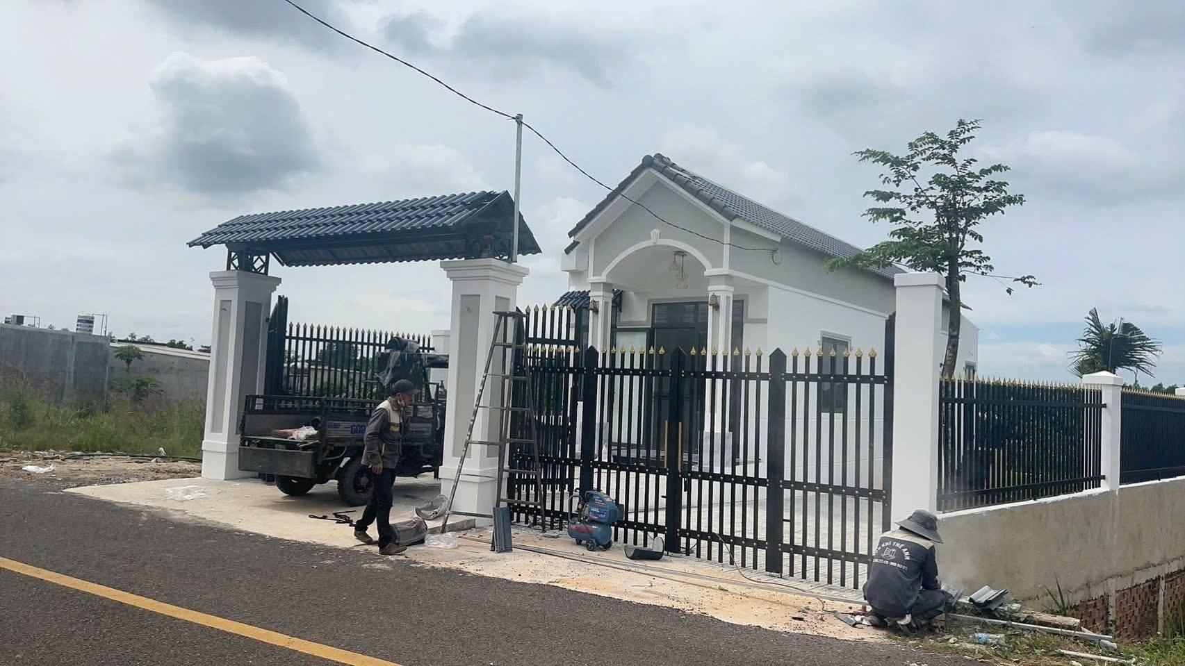 Ngôi nhà bao gồm 2 phòng ngủ, 1 nhà vệ sinh, 1 phòng khách, 2 sân để ô tô và vườn cây xanh mát, được xây dựng hàng rào bao quanh đất.