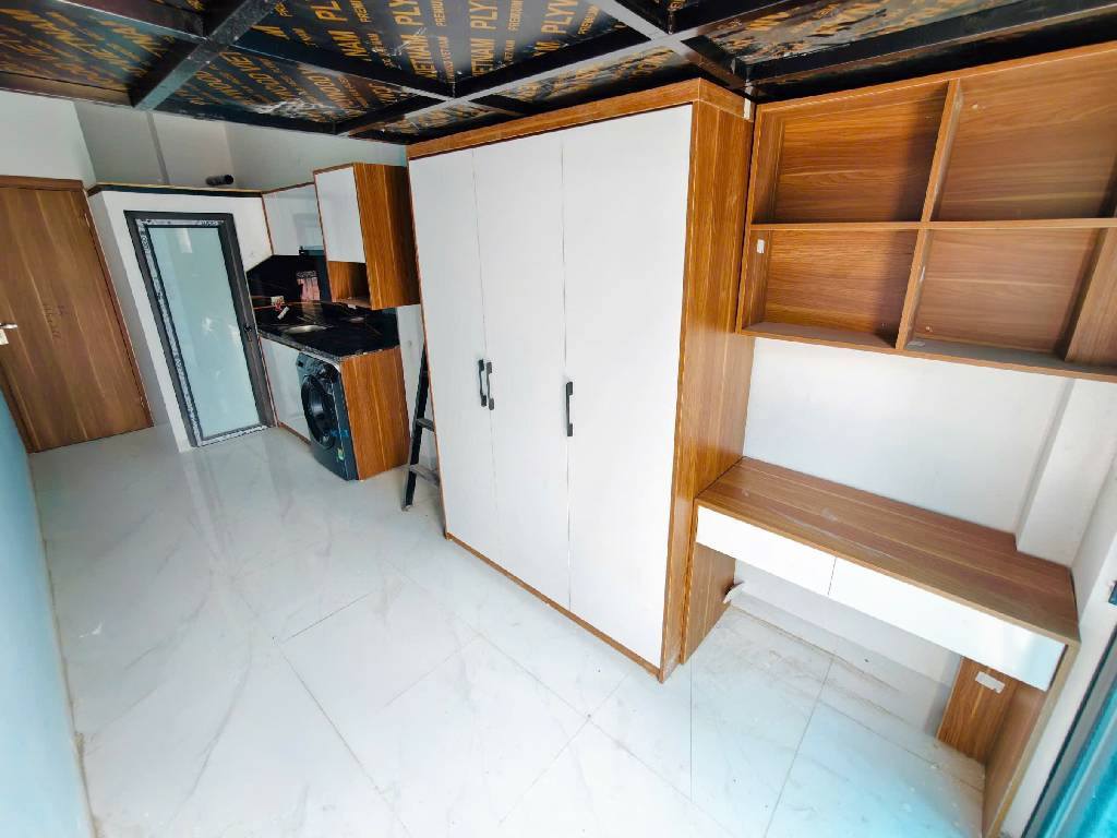 Tòa nhà 8 tầng, thang máy vèo vèo, thiết kế cực chất với 24 phòng khép kín, ban công, cửa sổ riêng, tha hồ đón ánh nắng và gió trời. Nội thất mới toanh, ở sướng như tiên. Hệ thống PCCC đạt chuẩn, an toàn tuyệt đối, cửa chống cháy, đầu báo cháy, đầu phun spiner từng phòng, khóa vân tay xịn sò, tha hồ yên tâm.