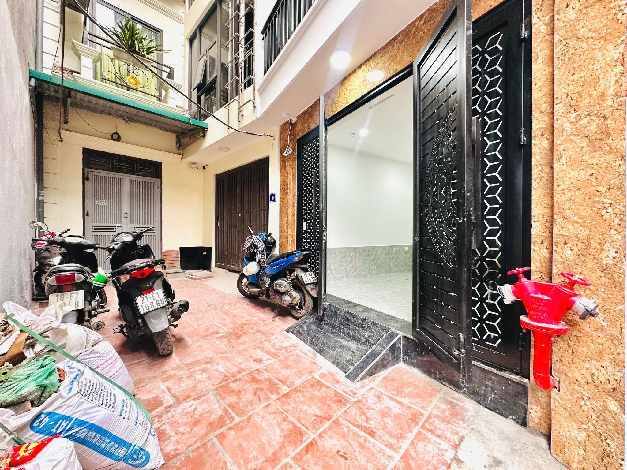 Tầng 1 được bố trí làm khu vực để xe tiện lợi. Từ tầng 2 đến tầng 5, mỗi tầng có 2 phòng khép kín.