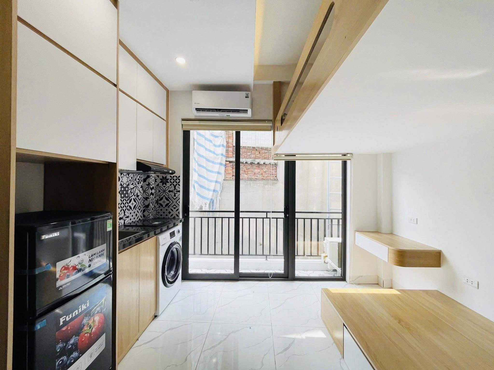 Nhà cho thuê dịch vụ (CHDV) xây mới tại Minh Khai, Hà Nội, với thiết kế 6 tầng thang máy, sở hữu mặt tiền 3,5m và diện tích 48m2.
