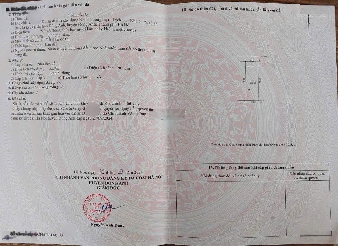 Chủ đầu tư chính thức thông báo với quý khách hàng. Chúng tôi chính thức mở bán 15 lô có sổ đỏ sang tên luôn khi khách mua tại chung tâm thị trấn Đông Anh -Giá Chỉ từ 16,4 tỷ/ 1 lô 93m2 hiện đã có thể kinh doanh luôn, mặt đường thành phố 20m chỉ bằng 1/3 giá bên Vin Cổ Loa. -Xây dựng 5 tầng + 1 tum -Mặt tiền lớn phù hợp với làm nhà hàng, Văn phòng cho thuê kinh doanh buôn bán. - Thông tin chi tiết sản phẩm: + Lô 93,2m2 giá 16.45 tỷ ( Đơn giá : 176.545.380 đ/m2). Tổng diện tích sàn xây dựng: 375.9 m2 + Lô 94.3m2 giá 16.62 tỷ ( Đơn giá : 176.316.695 đ/m2). Tổng diện tích sàn xây dựng: 375.9 m2 + Lô 98.6m2 giá 17,26 tỷ ( Đơn giá : 175,058,032 đ/m2). Tổng diện tích sàn xây dựng: 365.6 m2 + Lô 108.1m2 giá 18,88 tỷ ( Đơn giá : 174,685,734 đ/m2). Tổng diện tích sàn xây dựng: 398.9 m2 + Lô 111.3 m2 giá 19,38 tỷ ( Đơn giá : 174,175,548 đ/m2). Tổng diện tích sàn xây dựng: 398.9 m2 Thiết kế: Tối ưu diện tích sử dụng, không gian hợp lý, tối ưu công năng: Một mặt tiền, 2 mặt thoáng. - Vị trí dự án: Nằm tại trung tâm thị trấn Đông Anh Happy Land 1-5, Nguyên Khê, Đông Anh Khu dân cư văn minh, quy hoạch đồng bộ. Liên hệ ngay để xem nhà thực tế và chốt giá tốt: Chủ đầu tư: 0916144810 Phòng KD Chủ đầu tư