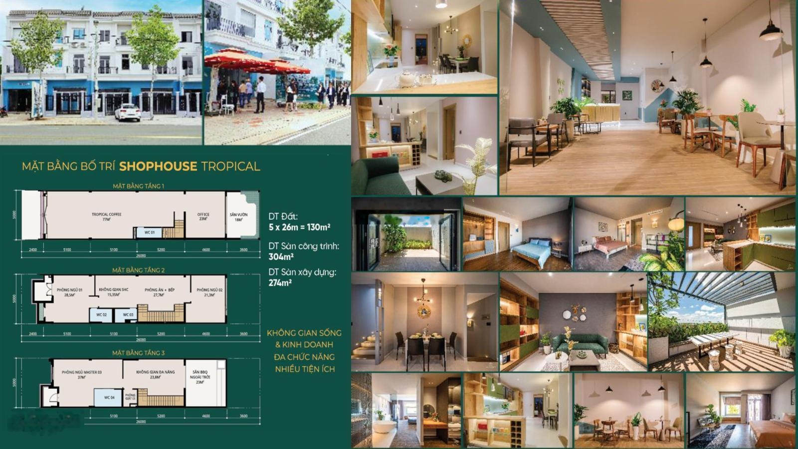 Shophouse 3 tầng 5x26=130m2 đất, 304m2 sàn mặt đường 70m đối diện cổng Khu CN giá chỉ 3,9 tỷ.