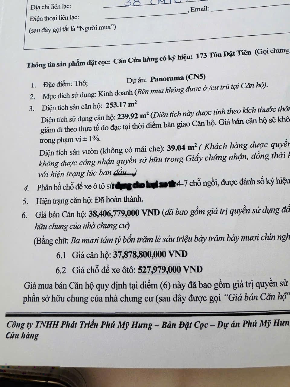 Thông tin của bất động sản