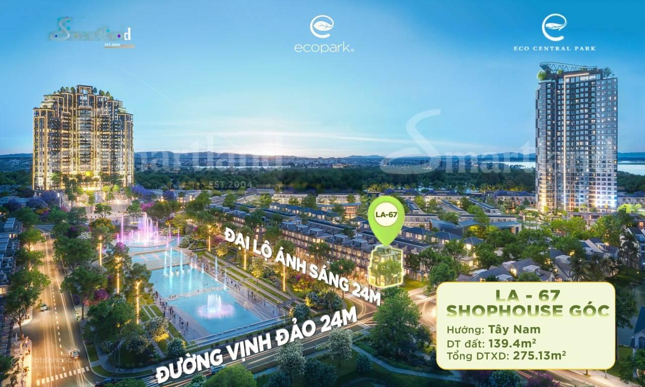 Cần bán shophouse góc mặt đường Đại lộ Ánh Sáng 24.5m giao với Đường Vịnh Đảo phân khu Central Plaza thuộc dự án Eco Central Park Vinh Nghệ An.