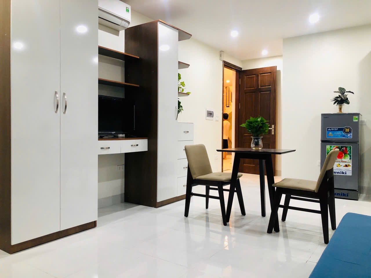 Cho thuê căn hộ Studio tại ngõ 44 Trần Thái Tông, Cầu Giấy, Hà Nội. Căn hộ có diện tích 35m2, trang bị đầy đủ nội thất bao gồm giường, tủ, điều hòa, nóng lạnh, hút mùi, tủ lạnh và các thiết bị khác như hình ảnh. Tòa nhà có thang máy, thuận tiện cho việc di chuyển. Căn hộ có thể ở ngay từ ngày 30/11. Liên hệ qua số điện thoại 0984903051 (Zalo để được phản hồi nhanh chóng).