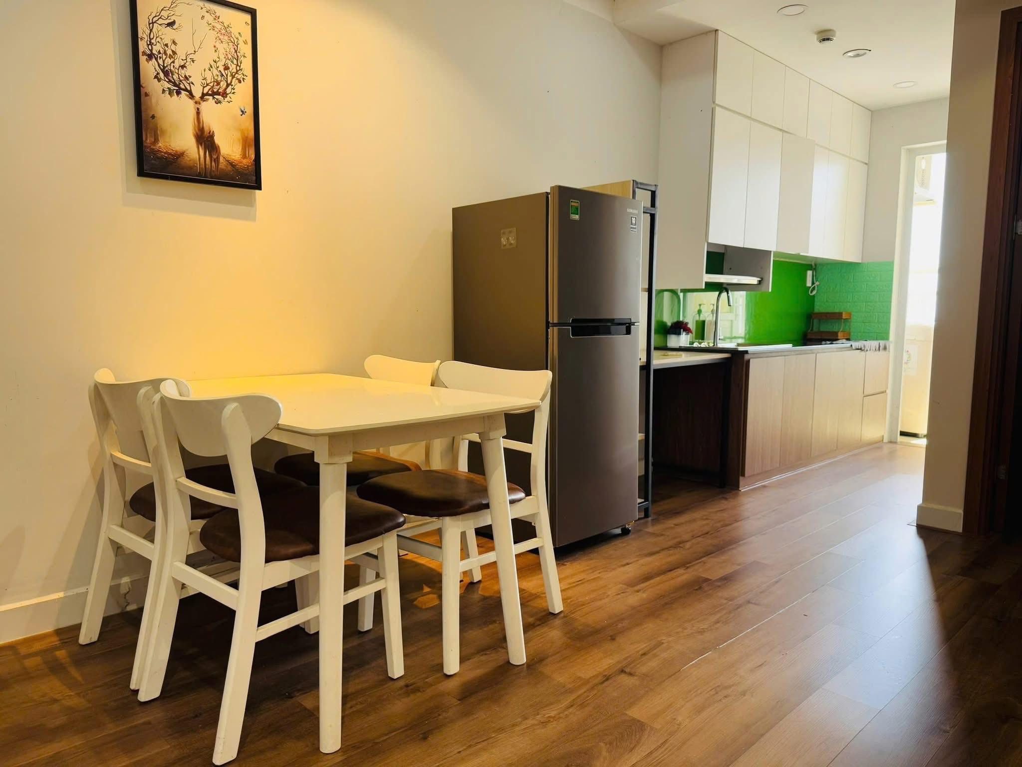 Căn hộ đã có sẵn nội thất, chỉ thiếu tivi và sofa, bạn có thể tự do trang trí theo phong cách riêng.