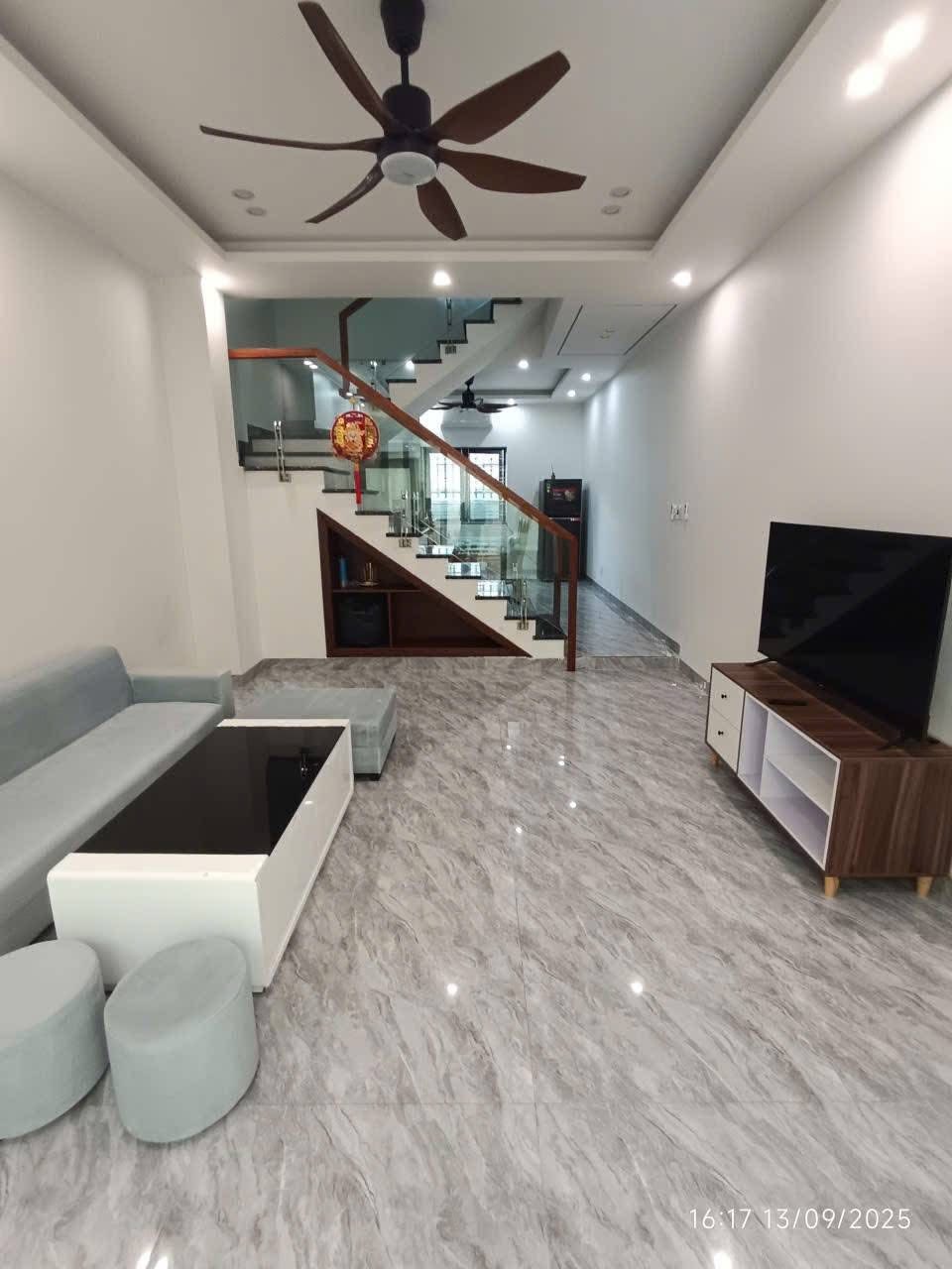 Ngôi nhà này không chỉ có 4 phòng ngủ và 3 nhà vệ sinh, mà còn được trang bị "tận răng" với 5 điều hòa mát rượi, 3 bình nóng lạnh ấm áp, 2 quạt trần "vi vu", tủ lạnh "xịn", tivi "xem phim thả ga", máy giặt "giúp việc", và bộ sofa "sang xịn mịn" cho phòng khách.
