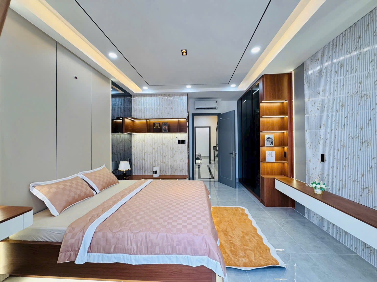 Ngôi nhà được trang bị đầy đủ nội thất cao cấp như máy lạnh, giường tủ, bàn trang điểm, máy giặt, bếp từ và tủ quần áo,...