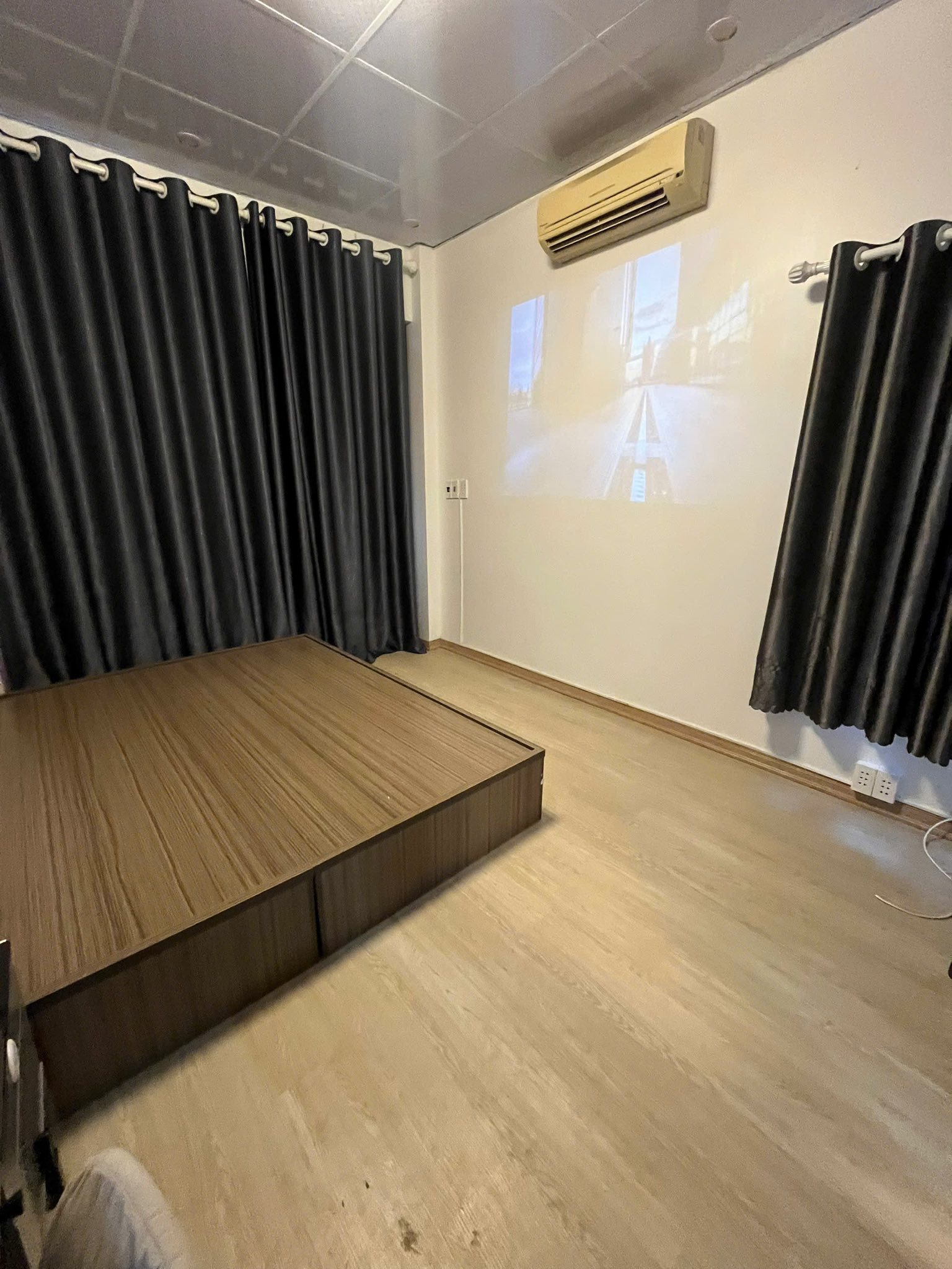 Nội thất: Full (điều hòa, nóng lạnh, giường, tủ, bàn trang điểm, máy chiếu)