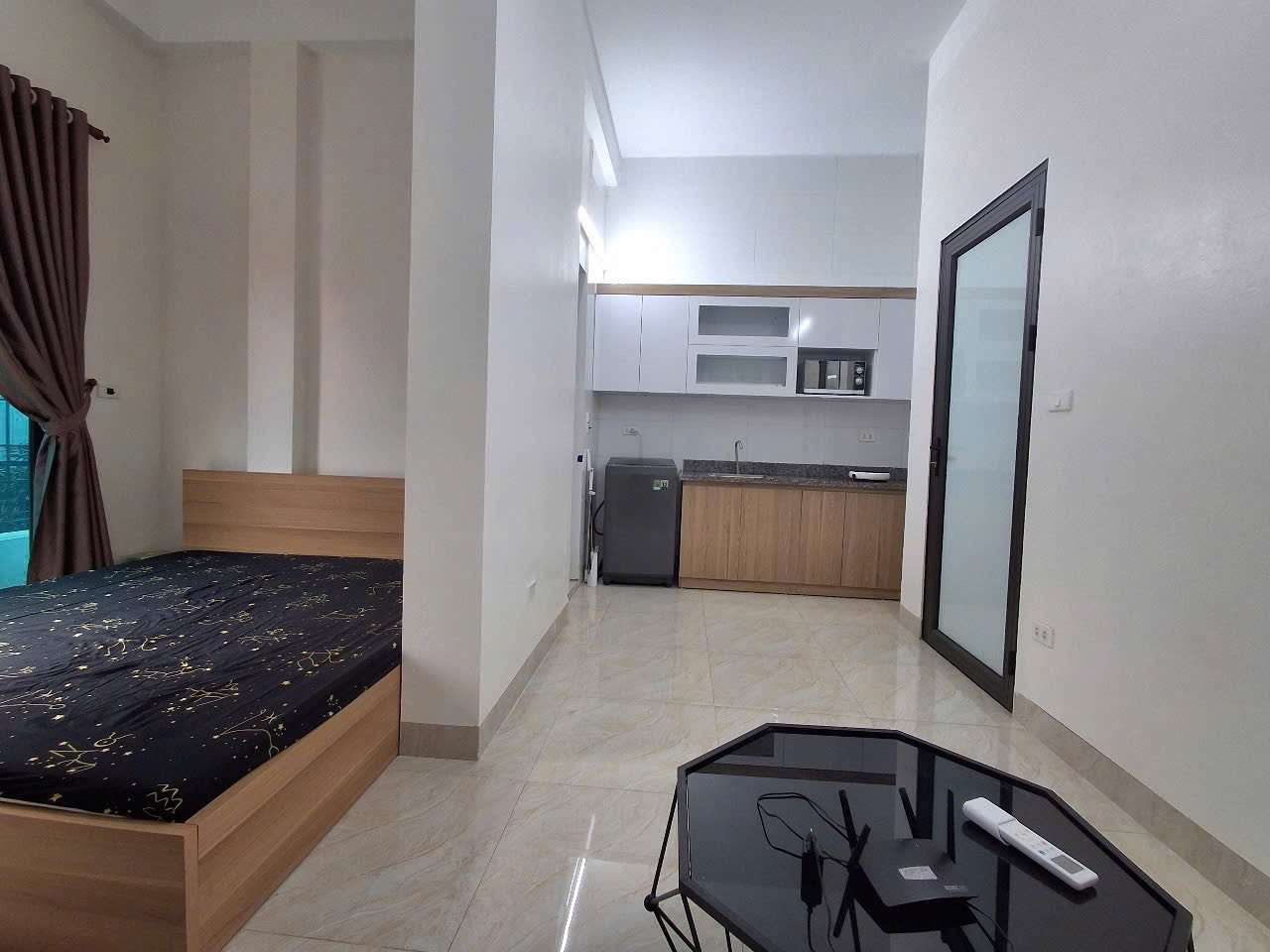 Đầy đủ nội thất: giường, tủ quần áo, điều hòa, nóng lạnh, tủ lạnh, tủ bếp, bếp từ, hút mùi, đệm, máy giặt riêng.